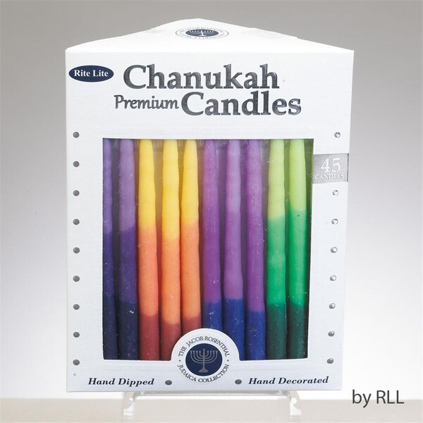 Premium Chanukah Candles, Rainbow Tri-Color, 12PK