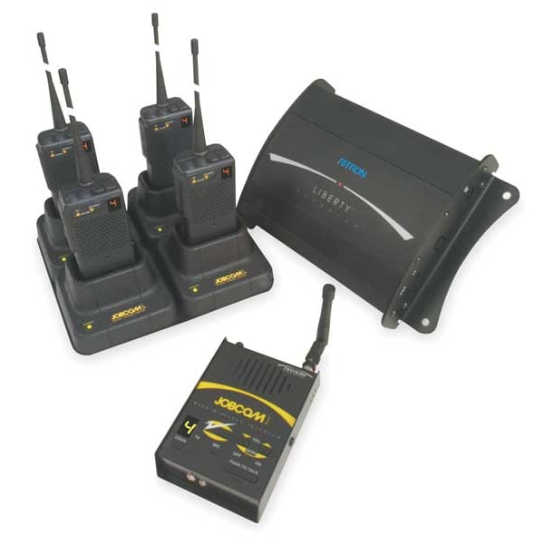 Handheld Two Way Radio and Repeater Bundle, Band Type UHF, Radio Transmission Analog, Digital Radio Technology Not Applicable, License Required Yes, Programming Requirements Pre-Programmed, Number of Channels 1, Output Power 2 W, Minimum Frequency 450 MHz, Maximum Frequency 470 MHz, Display Type Numeric, Subscription Type Not Applicable, Radio Series Jobcom JMX; Liberty, Battery Life 13 hr, Number of Radios Included 4, Waterproof No, Repeater Capable Yes, Intrinsically Safe No