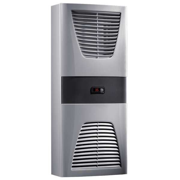 Heat Exchanger, Cooling Capacity 30 W/K, Housing Material Carbon Steel, Mounting Wall Mount, Cooling Method Air/Air, NEMA Enclosure Type 12, Height 37 in, Width 16 in, Depth 8 in, Standards cUR, UR, Wiring Method Fully Wired, Amps 0.28/0.34, Hz 50/60, Voltage 230V AC, Phase Single, Control Type Electronic Control, Housing Color Slate Gray, Includes Assembly Parts, Drilling Template, Floating Fault Signal Contact in Case of Overtemperature, Plug-In Terminal Strip