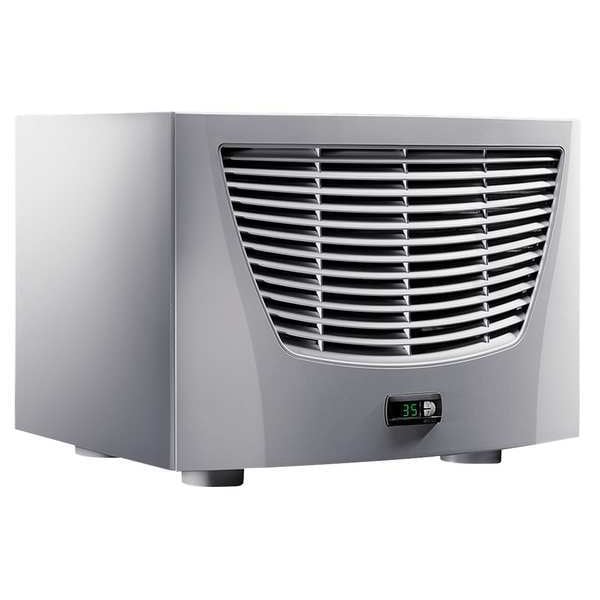 Heat Exchanger, Cooling Capacity 10,246/13,661 BtuH, Housing Material Copper/Brass, Mounting Roof Mount, Cooling Method Air/Water, NEMA Enclosure Type 12, Height 16 in, Width 24 in, Depth 19 in, Standards CSA, cUR, UR, Wiring Method Fully Wired, Amps 0.9, Hz 50/60, Voltage 115V AC, Phase Three, Control Type Comfort Controller, Housing Color Slate Gray, Includes Assembly Parts, Drilling Template, Sealing Mat