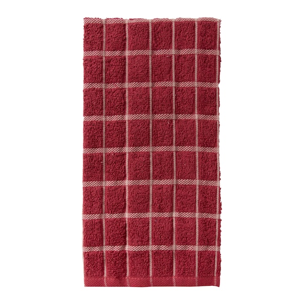 Cafe Solid Kitchen Towel Brick Ground/Putty Check, PK12