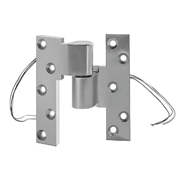 Electrified Hinge, Brass Material, Satin Chrome Finish, 250 lb Load Capacity, With Holes, 5 Holes per Leaf, No Ligature Resistant, 180 Degrees Range of Motion, Orientation Right Hand, 5 in Door Leaf Height, 5 in Frame Leaf Height, 1 1/8 in Door Leaf Width, 1 1/8 in Frame Leaf Width, 1-3/4 in Required Door Thickness, Full Mortise Mounting, Steel Pin Material, Nonremovable Pin Type, BHMA/ANSI No: C07202 Standards, Bushing Bearing Type, Square Corners, Included Hardware