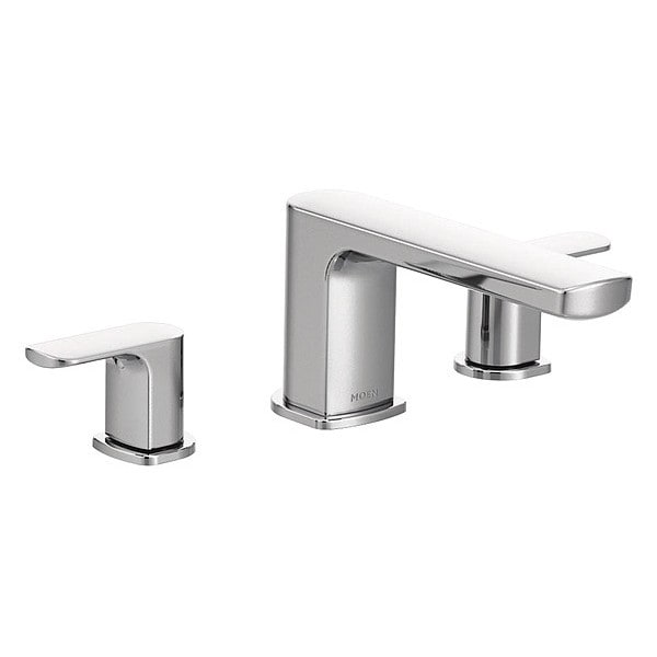 Bathtub Faucet and Trim, Non CEC Compliant, Connection Size 2 in, Female IPS, Faucet Handle Type Lever, Number of Handles 2, Moen, Rizon T935 Series, Shower Connection Type FIPS, Spout Reach 7 3/4 in, Trim Finish Chrome, Non Diverter Spout