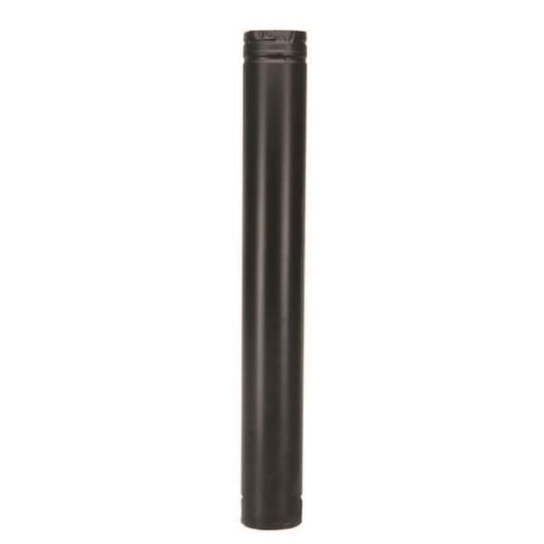 PelletVent Pro Applications: For Stoves And Inserts That Use Wood Pellets And Oil Fuel. Also Built To Vent Biofuel Products Such As Corn Switch Grass Cherry Pits Soybeans Coffee Husk Sunflower Hulls Walnut Shells and Wheat. Features fully unitized twist-lock construction in 3in diameter. Can be used in both vertical and horizontal installations. Stainless Steel welded seam inner wall combined with a galvalume welded seam outer wall painted black. -Listed To UL 441. -Marketed Exclusively To The Specialty Hearth Market. -Laser-Welded Not Spot Or Pop Welded 304 Stainless Steel. -Perfect Fit Construction Allows Ease Of Twist-Lock Connections While Eliminating Leaks - No Gaskets Or Sealants Used. Important: Pellet Vent Pro Pipe Is Not Interchangeable with Simpson Standard Pellet or Corn Vent. Note: Pipe Diameter is Diameter Plus 5/8in. Deduct 1 1/2in for installed length. Materials and Construction: Laser-welded double-wall pipe with an inner wall of super-ferritic stainless steel and a .018in laser-welded galvalume outer wall. Painted black exterior available. Primary metal-to-metal connection seals joint. Encapsulated o-ring provides a secondary seal. Clearances: 1in clearance to combustibles for appliances using corn and other biofuels wood pellets or oil.