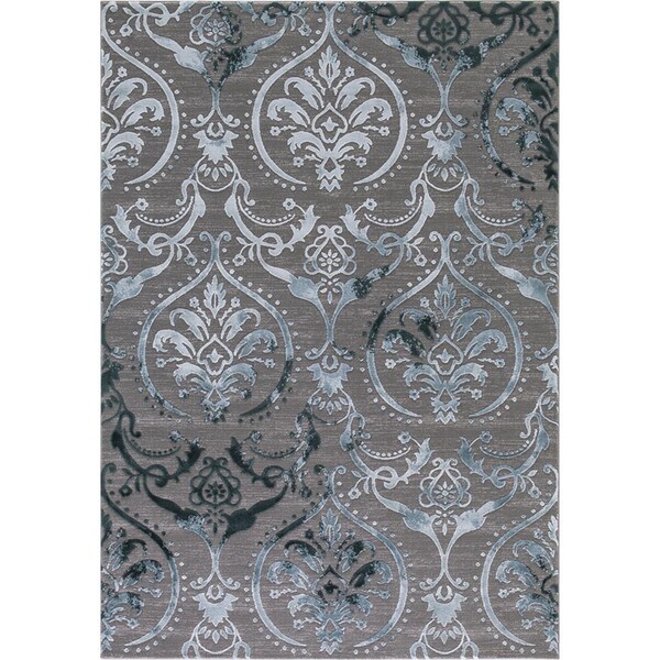 3 ft. 3 in. x 4 ft. 7 in. Thema Large Damask - Teal, Gray