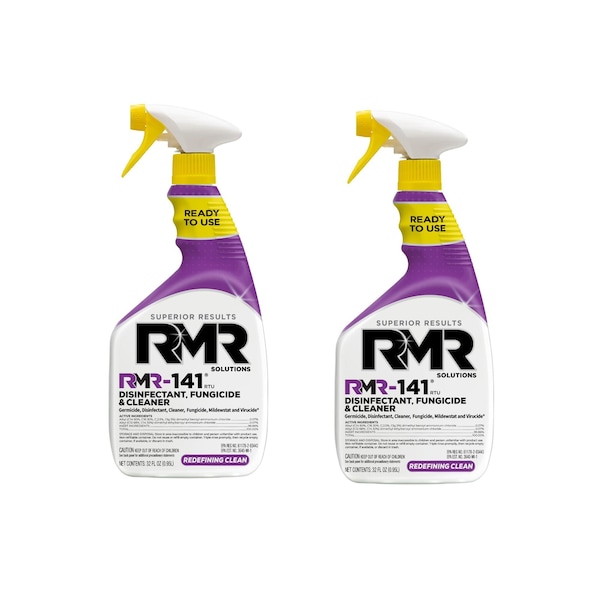 RMR-141 RTU Disinfectant Spray Cleaner, Kills 99% of Household Bacteria and Viruses, Fungicide Kills Mold & Mildew, EPA Registered, 2 Pack - 32 Oz.STRONGEST MOLD KILLER: RMR-141 RTU Disinfectant and Mold Killer; eliminates odors; and disinfects in one easy step. Its a powerful, safe, and effective way to remove mold, bacteria, and viruses. Voted Best Real-world disinfectant by Don't Waste Your Money January 2021.EPA REGISTERED: This mold and mildew removal spray is the only EPA-registered disinfectant that has been tested and registered by global health authorities in the presence of approximately 100% organic soil tolerances. Registered in EPA, USA; FDA of Thailand; ISS, Italy; Austrian Federal Environmental Office; INRS, France;POSITIVELY CHARGED DISINFECTANT: RMR-141 RTU Disinfectant is a positively charged disinfectant that is powerful and works to easily track down and stick to negatively charged bacteria.KILLS 99.9% OF BACTERIA: Our mildew, odor, and mold-removal spray kills 99.9% of household bacteria and odor-causing bacteria. Its fungicidal and effective against a broad spectrum of bacteria. When used as directed, the product inhibits odors.MULTIPLE APPLICATIONS: Our mold killer has a broad-spectrum fungicide, virucide, and disinfectant formula that kills mildew and more than 141 different microorganisms. This product is for use in households, hospitals, restaurants, and institutions.