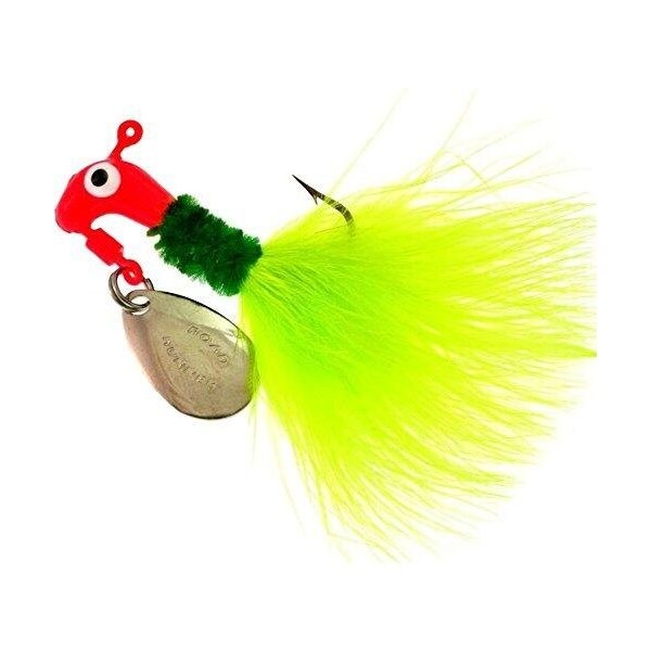 Marabou Jig WSpinner, 18 Oz, Fluorescent RedGreenChartreuse Strip, Strip Card (Discontinued)