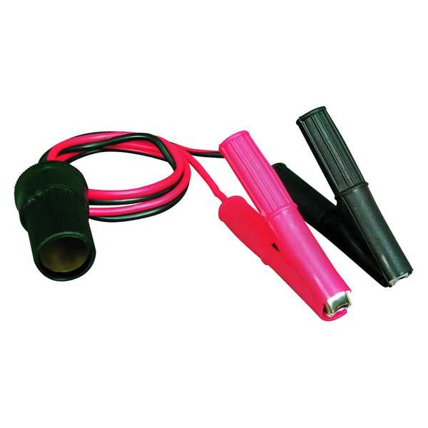 Lighter Socket Adapter with Battery Clips, Product Type Plug Adapter, Number of Connections 1, Cord Length 2 ft, Color Black, Red, Ports 12V Auxiliary Port, Includes 2 ft 14 AWG Wire, Compatible Devices 12V Devices, Current 1 A, Features Positive and Negative Clips, Operating Voltage 12V DC