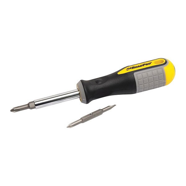 The Roadpro RPS61 Phillips, Slotted Bit Drive is a multi-bit screwdriver that has all the tools you need for your next project. This 6-in-1 tool features a chrome finish and is compatible with screwdrivers using 1/4", 5/16" drive size bits. The bit style of this chrome multi-bit screwdriver is both Phillips and slotted. With its high quality design, the Roadpro Multi-Bit Screwdriver will help you to get the job done quickly and efficiently.