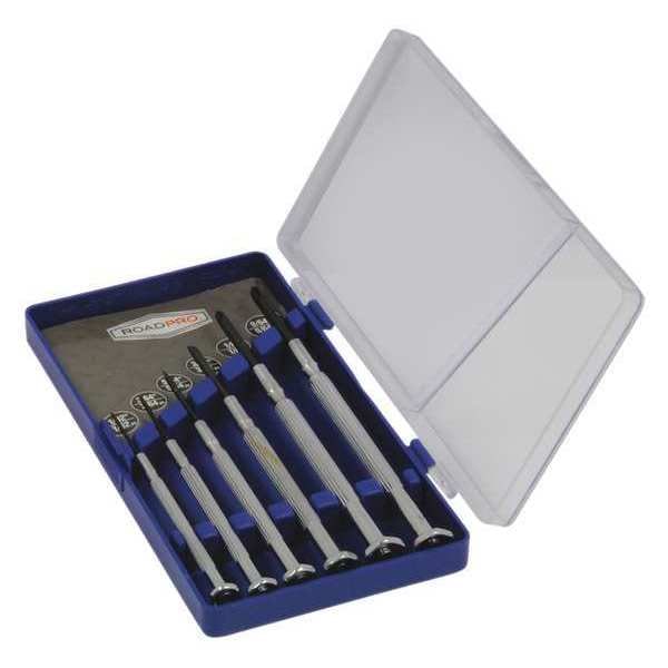 The RoadPro RP-13305 Precision Screwdriver Set is a convenient kit of 6 screwdrivers that come in a handy storage case. This precision screwdriver set features rust resistant tools. The tip sizes range from 1/32" to 9/64". Each tool comes with a slotted and Phillips bit style. The SAE measurement type makes it easy to find the right fit for your fastener. For reliable performance, you can count on the RoadPro RP-13305 Precision Screwdriver Set.