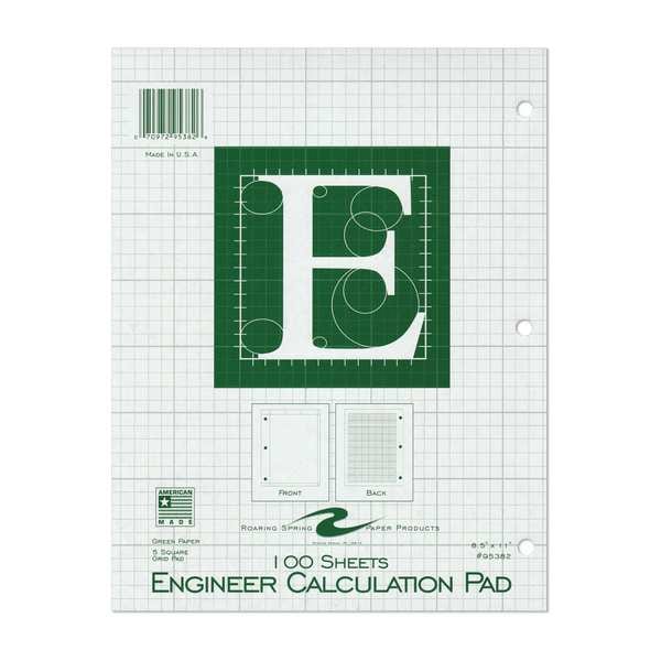 Case of Engineer Pad, 8.5"x11", 100 sht, 5x5 Printed Back Enclosed Grid, Heavy Backing, 3-Hole Punch, PK24