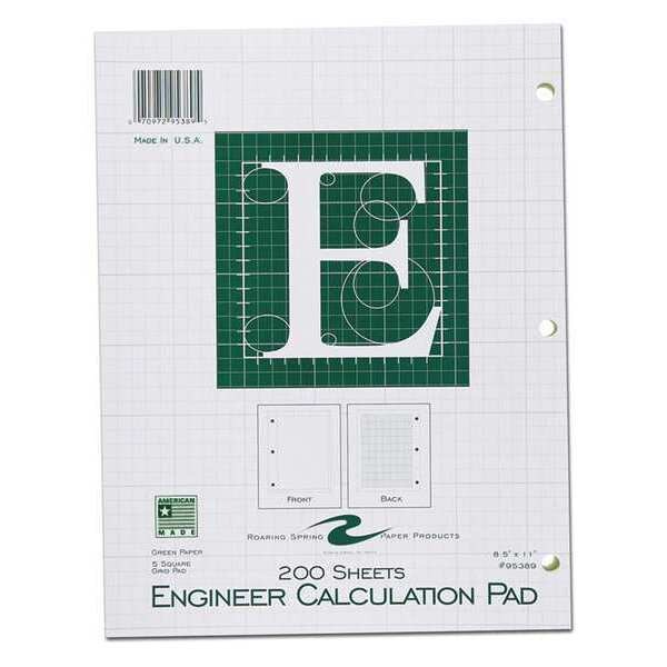 Case of Engineering Pad, 8.5"x11", 200 sht, GN Paper, 5x5 Printed Grid, 3-Hole Punch, Heavy Backing, PK12