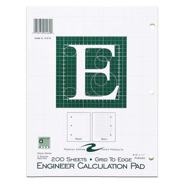 Case of Engineering Pad, 8.5"x11", 200 sht, Green Paper, 5x5 Graph, 3-Hole Punched, Heavy Backing, PK12