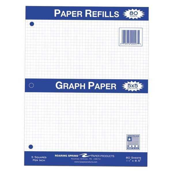 Loose Leaf Graph Paper, 80 sht/PK, 8"x10.5", 5x5 Graph Ruled Notebook Filler Paper, 3-hole Punched