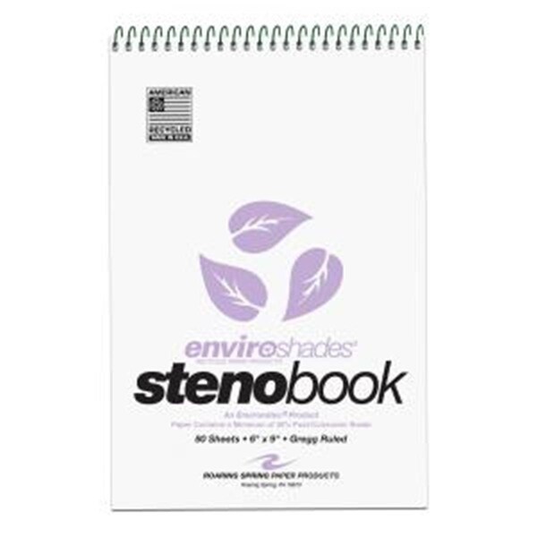 -Material: Heavy Chipboard. -Binding: Black spiral wire. -Binding Edge: 6. -Construction: Spiral bound. -Cover Colors: Orchid. -Cover Material: Brite cover. -Paper: 15# recycled tablet. -Paper Color: Orchid. -Polywrapped: Yes 4/pack. -Post-Consumer Recyc