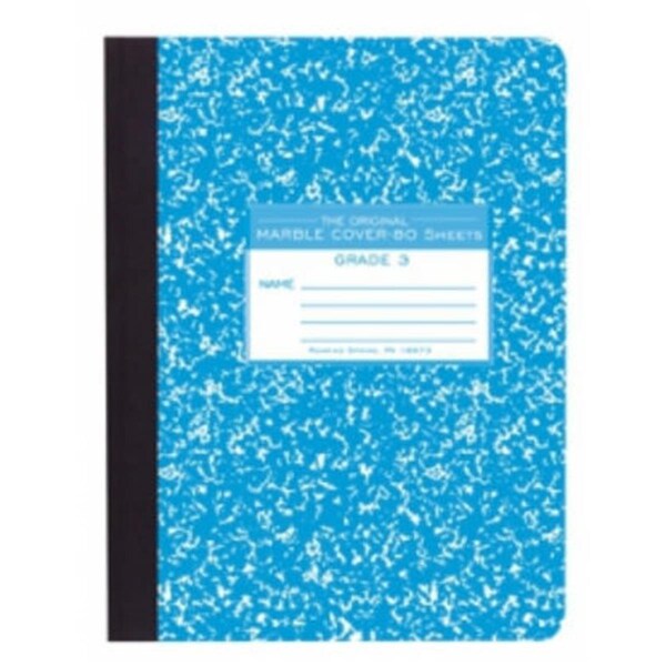 -Grade Three skip ruling with margin. -Center sewn and tape bound. -Binding: Black Tape. -Binding Edge: 9-3/4. -Construction: Center sewn and tape bound. -Cover Colors: Blue marble. -Cover/Back Material: Stiff printed board. -Paper: 15 tablet. -Paper Col