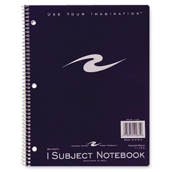 Wirebound notebook offers a one-subject format and coil-locked wire ends. Three-hole punched to fit inside standard three-ring binders. Full-size notebook contains 80 sheets of 15 lb. college-ruled paper. -Type: Printed. -Size: 8.50 x 11. -Ruling: College Ruled. -Holes: 3 x Punched. -Cover: Assorted. -Binding Type: Wire Bound.