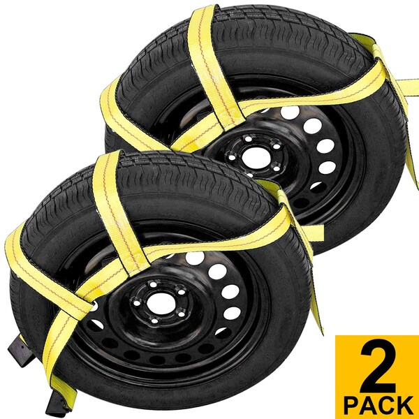This Robbor Adjustable Tow Dolly Basket Strap will Secure Vehicles for Towing with Two Flat Hooks. Fits Car Wheel Rims with Diameters Ranging from 14" to 22".