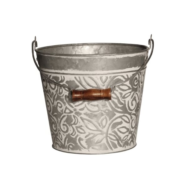 8, Galvanized With White Wash, Floral Metal Planter, With Handle