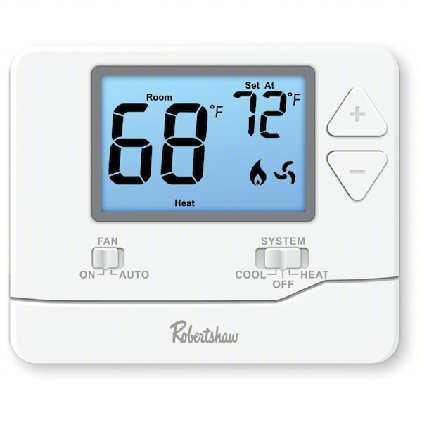 Digital Wall Thermostat,Non-Programmable, Heat and Cool, Manual, Compatible System Type Heat Pump with Aux, Calibration Setting, Dehumidification Control No, Differential Type Adjustable, Digit Size Large/Easy Read, Digital, Dual Transformer Compatible No, Humidification Control No, Includes Positive Off Yes, Minimum Control Temperature 44 Degrees F, Maximum Control Temperature 90 Degrees F