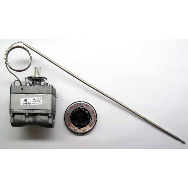 Gas Thermostat, Product Type Gas Thermostat, For Fuel Type LP, Natural Gas, Maximum Control Temperature 550 Degrees F, Minimum Control Temperature 150 Degrees F, Dial Range 150 to 550, Capillary Tube Length 48 in, Gas Connection 1/2 In. Pipe, Compatible with Brand Bakers Pride, Consolidated Communications, Franklin Chef, Garland, Hobart, Jade Range, Johnstone Supply, Peerless, PMI, Robertshaw, South Bend Range, Uni-Line, Wolf Range, Compatible with Series Universal, Sensing Bulb Diameter 1/4 in