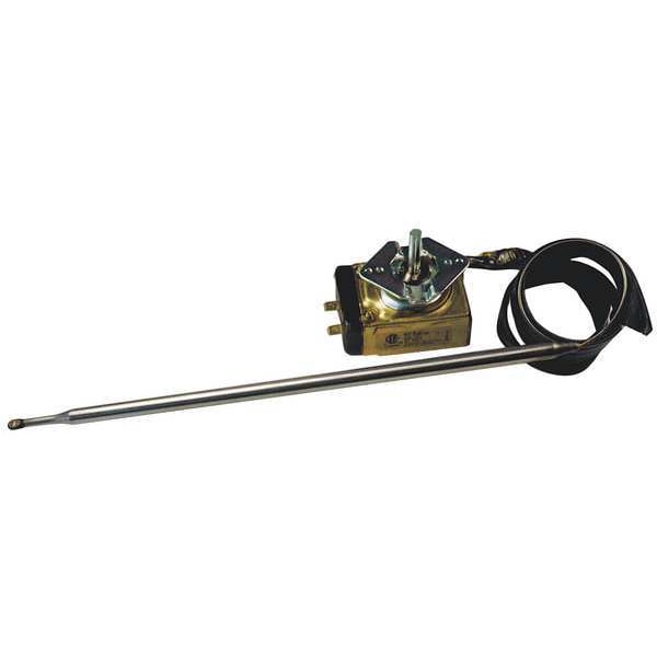 Electric Thermostat, Product Type Electric Thermostat, Capillary Tube Length 30 in, Sensing Bulb Diameter 3/8 in, Stem Length 7/8 in, Sensing Bulb Length 10 1/2 in, Compatible with Brand Consolidated, Hobart Corp., Keating/KKO, OEM Replacement Part Number 002581, 021081, 113840-2, 21081, 24185, 413840-2, E-155, F16-758, KX-216-30, KX-439-30, RX-4-30, Input Voltage 120/277V AC, Maximum Control Temperature 400 Degrees F, Minimum Control Temperature 245 Degrees F, Application Cooking