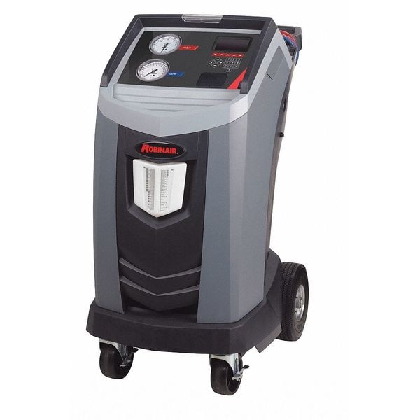 Refrigerant RRR Machine, Product Type Refrigerant Recover, Recycle, Recharge Machine, Refrigerant Type R-1234yf, Compatible Vehicle Type Gas Vehicles, Filter-Drier Capacity 150 lb, Tank Type External Tank, Tank Capacity 30 lb, Operation Automatic, Display Size 4.3 in, Display Type QVGA Color LCD, Functions Service Record Storage, Vacuum Leak Test, Connectivity Bluetooth Capable (Receiver Not Included), Wi-Fi Capable (Receiver Not Included), Standards SAE J2927, Hose Length 9 ft, Color Gray