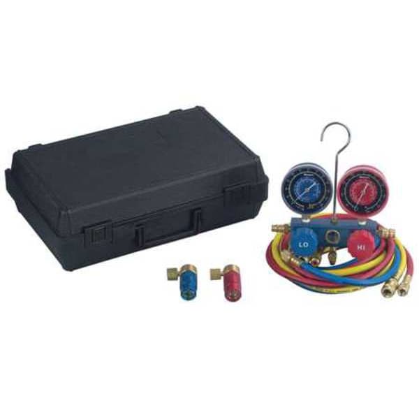 Manifold Hose Kit, Tool Type Manifold Hose Kit, Application Automotive, Material Aluminum, For Use With R-134A A/C System, Number of Pieces 3, Includes 72 in R-134A Hose Set, 90 Degrees Manual Couplers, Blow-Molded Carrying Case