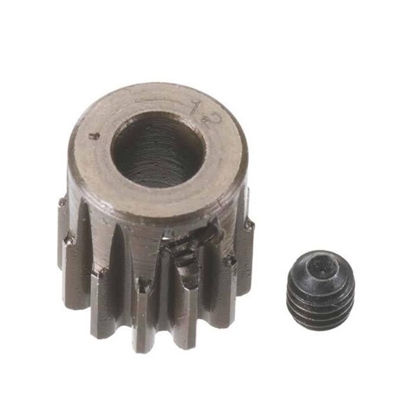 Features -12 Tooth 0.8 Hard Bore Pinion Specifications - Size: 5 mm - Dimension: 3.38in H x 0.38in W x 2.5in L - Weight: 0.06 lbs