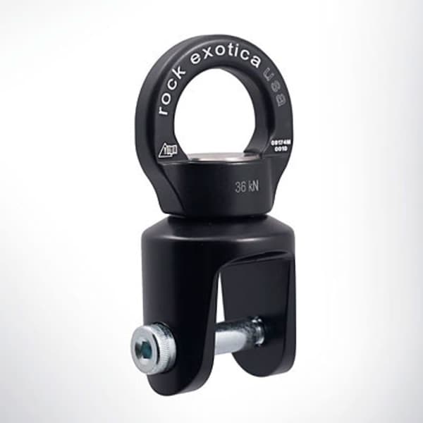 Tree climbing requires a lot of moving around while on rope, which usually means a lot of twisting. If you're like a lot of climbers, the worst time to untwist your line comes when you are in the most precarious positions and although rarely life threatening it certainly can be inconvenient. Rock Exotica developed this precision swivel to relieve just such twisting. Youll really appreciate the smooth swivel action of sealed ball bearings inside the forged alloy body, for years to come. Clevis swivel 8,093 lbs. Tensile Strength, 36kN, 5.76 oz. For pulley connections, lanyards and descenders.
