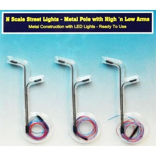 N Scale Double Pole Street Lights with Two High-Low Arms