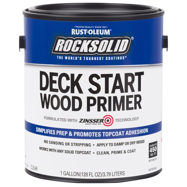 Rust-Oleum Restore Deck Start Wood Primer provides the perfect clear base coat for any solid stain on structurally sound wood surfaces. Apply with a 3/8" nap roller, short nap stain pad or synthetic paint brush on weathered, worn or previously coated wood decks, docks and exterior wood furniture. Simplify your outdoor deck project with Restore Deck Start Wood Primer