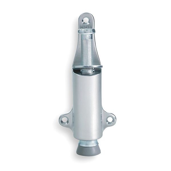 Plunger Door Holder, Color Gray, Satin Chrome Finish, Material Rubber, Projection 1 7/8 in, Height 5 3/8 in, Width 1 3/8 in, Mounting Type Door-Mount, Tip Material Rubber, Hardware Included