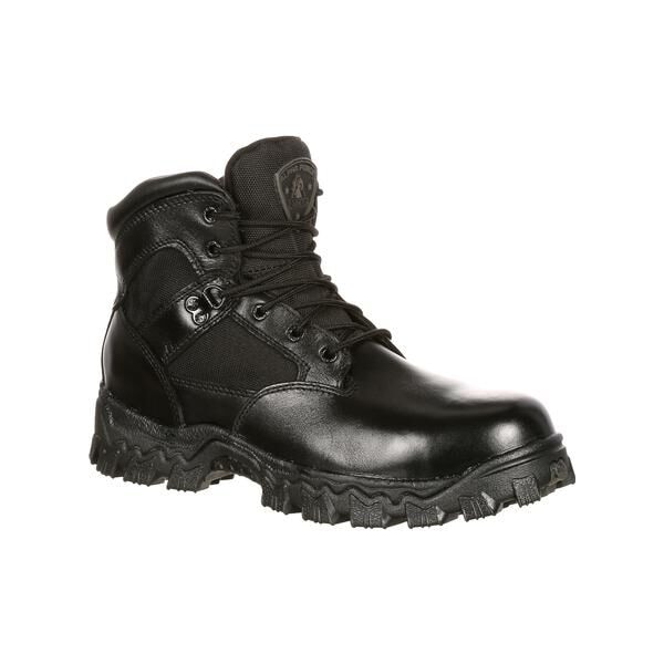 One of the key features of Rocky Alpha Force Waterproof Composite Toe Public Service Boots is the non-metallic composite toe cap. These meet the highest ASTM F2413 Protective Toe footwear standards for Impact and Compression resistance. An additional feature of these public service boots is Rocky Waterproof construction. It combines a waterproof inner layer with the upper providing a barrier that helps keep water out and feet dry. The boots have a contoured removable polyurethane cushion insole providing direct underfoot cushion comfort. Some open-celled foams feel comfortable to the initial touch, but tend to break down faster than a product made with polyurethane. Plus, these insoles are extra thick in the heel contact area. This provides additional underfoot comfort. In addition to meeting Impact and Compression standards, this style complies with Electrical Hazard standards. This type of work boot is made with insulating bottoms providing secondary electrical hazard protection to those dealing with open circuits under dry conditions, but also can be worn in work areas requiring only basic protective toe work boots.