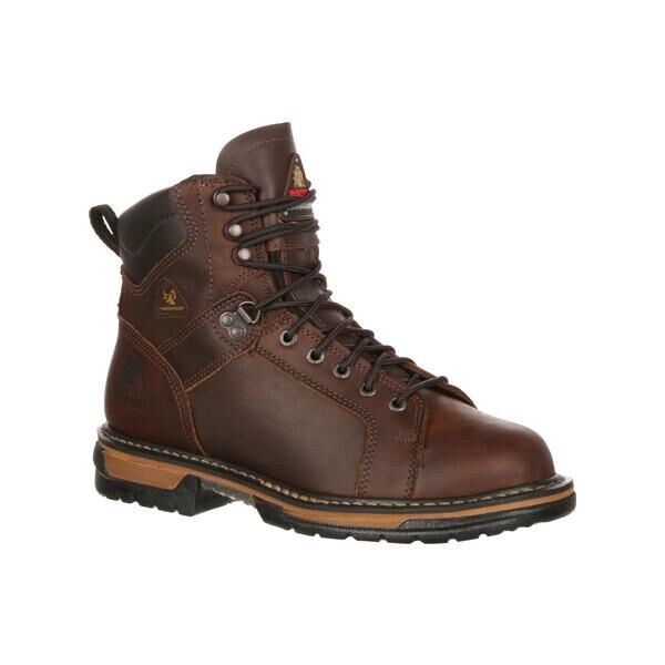 The Rocky IronClad Waterproof Lace To Toe Work Boot combines safety features with a concentration on comfort. It's the sturdy shoe that'll get you through the toughest of work days. With six inches of dark brown, full-grain leather protecting your feet, you can feel empowered to exceed expectations and enjoy the work you do. This boot is complete with an extra-durable ribbed tempered steel shank for safety and support. Walk on, worry-free with the protection your duties call for. The seven-layer slip and oil-resistant IronClad outsole offers additional sturdiness to your stride. With high-quality tread and strategic flexibility, this footwear has your foot's well-being covered, letting you focus on the tasks about which you care most. Guaranteed Rocky Waterproof construction empowers you in the face of unexpected obstacles. Whether it's a breakroom spill, a warehouse flood or an outdoor assignment in inclement weather, you can feel comfortable knowing your feet will be dry at the end of the day in this waterproof work boot. Rocky included a removable Air-Port comfort insole for additional relief. This thoughtfully crafted feature contributes coziness and breathability to make this a comfortable work boot. You can appreciate its advanced quality and luxury relief in any and all parts of your life. If you're looking for a men's work boot to sustain not just a hard day's work, but the hard work of many days, the Rocky IronClad Waterproof Lace To Toe Work Boot was built for you.