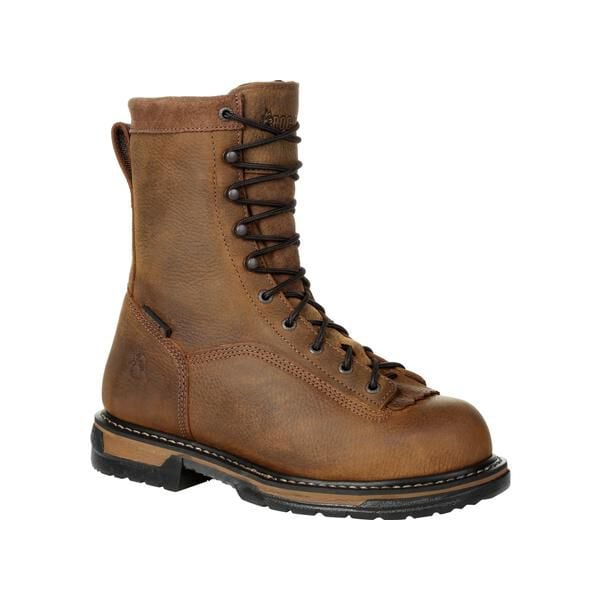 The Rocky IronClad Waterproof Work Boot boasts the collection of features you rely on most to get you through a trying day. The brown, full-grain leather provides the traditionally professional appearance you prefer while a strategic set of footwear technologies make this boot as successfully functional as you are. The seven-layer slip and oil-resistant Ironclad outsole offers outstanding comfort while fulfilling the safety precautions required to complete tasks confidently. High-quality tread and flexibility empower every step while an extra durable-ribbed tempered steel shank protects your foot fully. Whatever your work environment may be, you can overcome obstacles and enjoy a productive day. Why be reactive, when you could be proactive. Like all parts of life, work can be unpredictable. Guaranteed Rocky Waterproof construction lets you work through unexpected challenges without worrying about wetness. Your feet are sure to stay dry in this durable men's work shoe. Do more than complete tasks; enjoy them. With a work shoe as comfortable as it is sturdy, you can do exactly that. The Rocky Air-Port cushion footbed contributes relieves your active feet, while maintaining air circulation and breathability for maximum comfort. This durable kiltie boot is built to be loved for years to come. Its sturdy construction performs as well as its wearer with a high-tech toughness that's hard to find anywhere else. If you're looking for a work boot to emphasize your accomplishments, accentuate your professionalism and enhance your productivity, the Rocky IronClad Waterproof Work Boot has you covered.