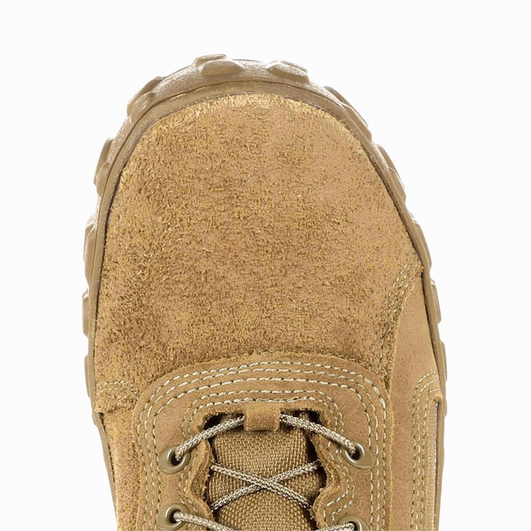 This Rocky S2V coyote brown military boot offers unrivaled comfort and stands up to tough conditions. This uniform compliant boot is approved for wear with all applicable Operational Camouflage Pattern variations. This boot goes above and beyond, helping you go the extra mile through cold and wet conditions. Cross streams and hike through wet environments without hesitation. This boot features a breathable waterproof membrane system that allows you to brave the elements while letting your feet breathe permitting you to perform to your highest potential. This boot also offers 400 grams of 3M Thinsulate Ultra insulation keeping your feet warm and helping you focus on the task at hand. Made of flash resistant, water resistant leather, 1,000 denier CORDURA nylon, and coated for flame resistance, these boots allow you to put your best foot forward. The durable, triple stitched military boot withstands everyday wear and tear and reduces ankle injuries with Roll Stop Ankle Stability and a Vibram sole with proprietary high walls and a polyurethane midsole. The stretch LYCRA tongue hugs your feet for a secure fit and a fiberglass shank adds additional durability and support. Find even more comfort when you look inside this boot. The Berry Complaint Moisture Wicking Lining wicks away moisture while the Rocky Air Port footbed cushions your feed and has perforations that allow air flow. The footbed also features an Aegis microbe shield to help fight odor and bacteria. If you're looking for a coyote brown combat boot that meets your performance and comfort needs, get the Rocky S2V Military Boot.
