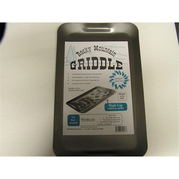 This rugged little griddle is made with stamped in handles. Sized to fit RV stoves and 2 burner camp stoves, but works equally well on stove top, open fires and barbeques.