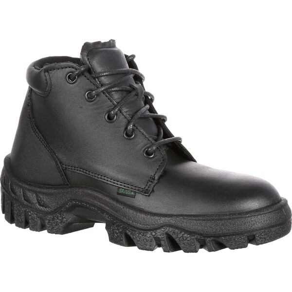 The Rocky Women's TMC Postal-Approved Chukka Public Service Boot brings together comfort and durability for a footwear solution to all your workday needs. A hardworking woman deserves a hardworking shoe, and this chukka boot boasts the features that fuel productivity. This six-inch boot is made from black, full-grain leather. The water-resistant and polishable material guarantees your favorite work shoe will keep you looking professional for years. This women's work boot is both Berry-Compliant and S. R. USA Postal-Approved. It's an American product for the best of America's employees. Enjoy the convenience and support of a non-metallic stabilizer. You can carry on anywhere feeling confident and comfortable doing your important job. The slip- and oil-resistant TMC Direct Attach TPU/PU outsole offers flexibility and stability for a steady stride. Take on trying conditions with certainty that you'll remain secure and capable of completing your tasks. This women's chukka boot provides exceptional, contoured comfort with the Rocky Air-Port cushion footbed which has been even further enhanced by an Aegis Microbe Shield applied to fight bacteria. Be comfortable all day, all week and all year. This supportive feature is designed to last. If you're looking for the work shoe that will let you do your best work yet, the Rocky Women's TMC Postal-Approved Chukka Public Service Boot is a powerful product.