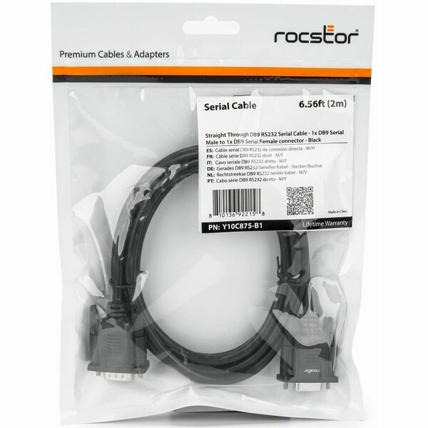 PREMIUM 2M 6.4FT STRAIGHT THROUGH DB9 RS232 SERIAL CABLE, M/F - 6 FT SERIAL EX