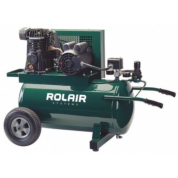 Portable Air Compressor, Lubrication Type Splash Lubricated, Air Tank Style Horizontal, Output Power 1.5 hp, Free Air Flow Rate 7.3 cfm, Maximum Operating Pressure 135 psi, Air Tank Size 20 gal, Input Voltage 120V AC, Current Rating 18.1 A, Sound Level 73 dBA, Weight 200 lb, Free Air Flow Rate @ Maximum Pressure 10.10 cfm, Number of Stages 1, Motor Type Induction