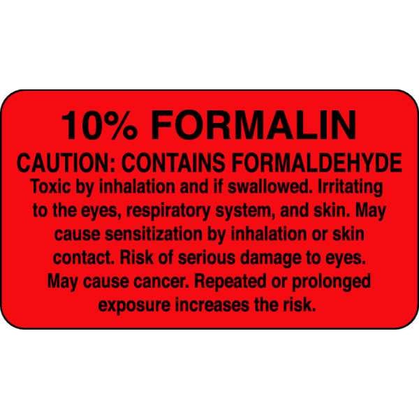 Label, Horizontal Rectangle, Number of Printed Sides 1, English, Sign Legend 10 Percent Formalin, Sign Legend Background Color Red, Sign Legend Style Text, Package Quantity 1000