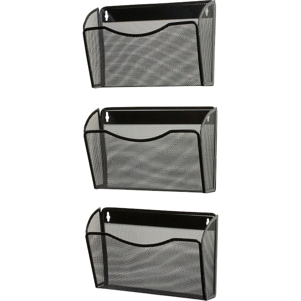 Mesh Wall File Three-Pack features a modern arched design that allows easy access to files. Holds documents and folders up to 13-1/2" wide. Wall files hang easily on partitions up to 2-7/8" thick with included hanger system. Made of steel. Unique rolled mesh criss-crossed design gives your work space a curb appeal all its own.