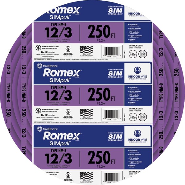 250 ' 12/3 Solid Purple NMW/G Electrical Wire