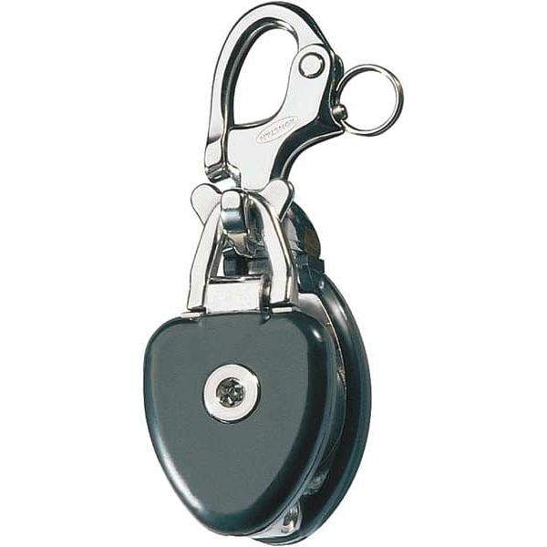 Pulley Block, Product Type Snatch Pulley Block, Pulley Type Swivel, Mount Type Not Applicable, Working Load Limit 2,980 lb, Operation Pulling, Attachment Type Snap Shackle, Compatible Rope Diameter 5/8 in, Sheave Inside Diameter 1 15/32 in, Sheave Depth 23/32 in, Sheave Outside Diameter 1 3/4 in, Compatible Rope Type Fibrous Rope, Bearing Type Roller, Attachment Inside Diameter 16 mm, Housing Material 316 Stainless Steel, Mounting Hole Diameter Not Applicable, Number of Grooves 1