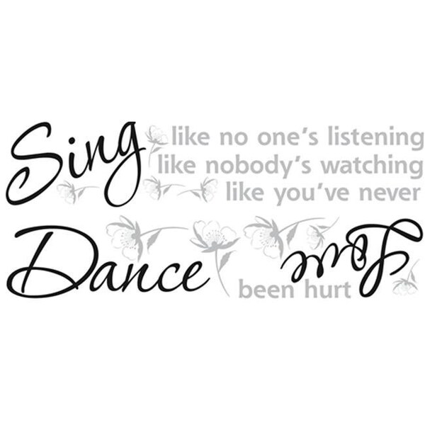 Sing like no one's listening, dance like nobody's watching, and love like you've never been hurt-these are words to live by. Add these beautiful phrases to any wall with this elegant set of stickers. Since each word and accent is individually cut, you can place each piece on walls, furniture, stairs, or any other smooth surface. You can even use the added decorative accents to spruce up other pieces or places in your home!.