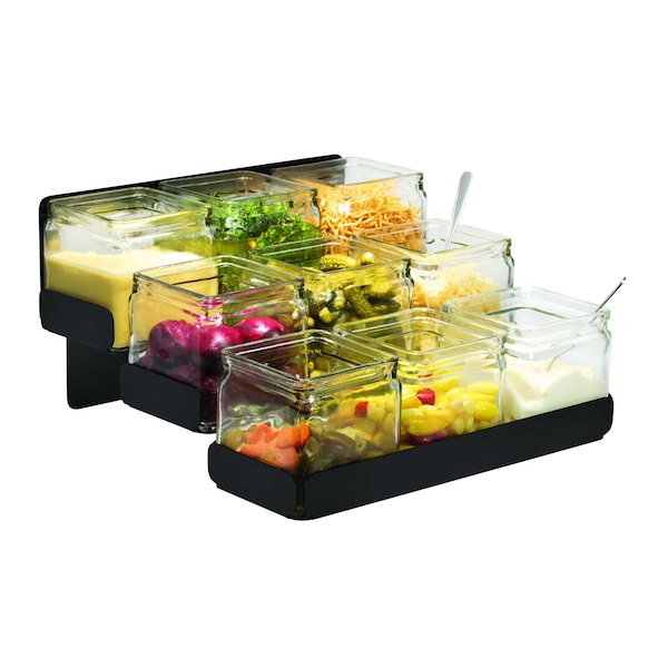 3 Level Black Matte Condiment Station with 9 Glass Jars, 1 EA