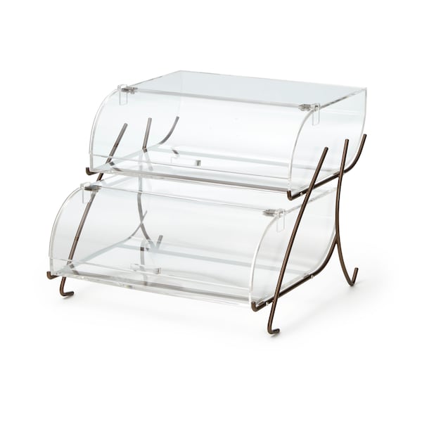 Rosseto Bakery case displays add style and functionality to your breakfast buffet. Sleek bronze finished metal accents provide visual interest, while the clear acrylic containers provide unobstucted biews of exciting selections. Has two tiers.