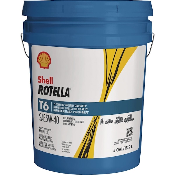 Shell Rotella T6 5W-40 diesel engine oil is a full synthetic motor oil that features exclusive Triple Protection Plus technology. Its formulated with fully synthetic base oils plus advanced additives to protect against wear deposits and oil breakdown. It also provides better low-temperature flow and enhanced fuel economy performance of 1.5% (compared to 15W-40 oils). Shell Rotella T6 5W-40 is suitable for new and older diesel-powered vehicles from Class 8 tractor/trailers to heavy-duty diesel pickups delivery utility school bus fleets and motorcycles. It provides a significantly increased level of protection against harmful engine wear (compared to previous generation API CJ-4 engine oils) and the advanced multi-functional dispersant additives offer an enhanced level of protection against the effects of soot dirt and other contaminants.
