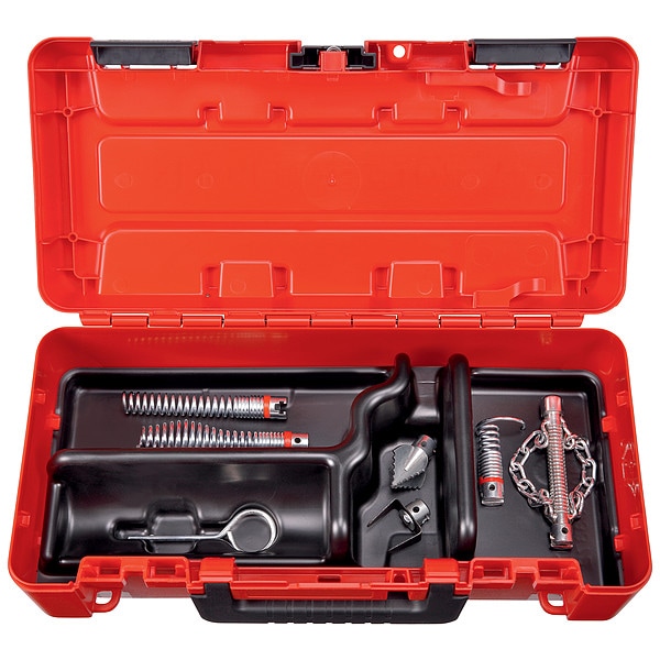 Drain Cleaning Set, Product Type Drain Cleaning Tool Set, Compatible Cleaner Series RODRUM S, Number of Augers 3, Auger Type Bulb Auger, Retrieving Auger, Straight Auger, Number of Cutters 3, Cutter Type 4-Blade Cutter, Chain Knocker, Knife Blade Cutter, Number of Cables 0, Maximum Drain Line Inside Diameter 5 7/8 in, Minimum Drain Line Inside Diameter 13/16 in, Application Janitorial, Pipe Cleaners, Plumbing, Cable Material Aluminum, Plastic, Steel, Connection Size 5/8 in, Coupling Type T-Slot
